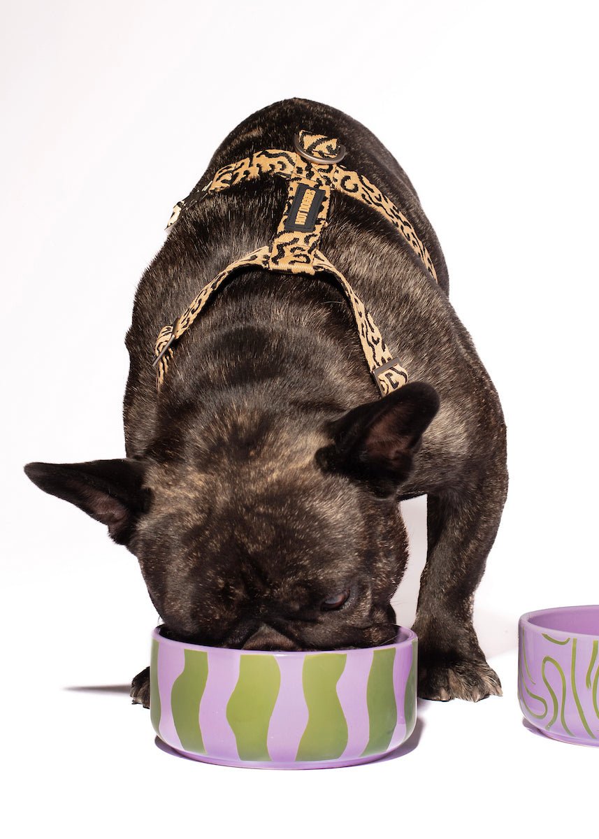 The Hot Doggies Groove Stripes Ceramic Bowl offers a playful and functional design that enhances your pet’s mealtime. Featuring bold green and purple stripes, this bowl is perfect for both small and medium dogs. Crafted from 100% ceramic, it’s durable, dishwasher-safe, and designed to last for years.