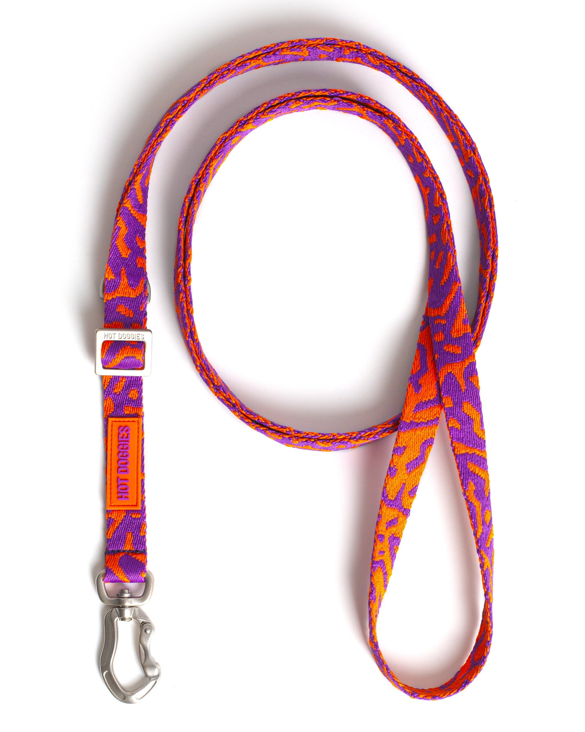 Style meets function with the Hot Doggies Poppy Sunrise Hands-Free Leash. The bold purple and orange pattern makes a dynamic statement, while the adjustable design gives you total versatility—wear it short, long, crossbody, or around your waist. Built for daily adventures with jacquard-woven recycled polyester, durable aluminium hook and sleek zinc alloy hardware.